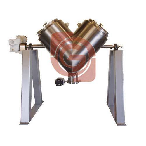 V - Blender V - Blender, such as the V-blender, are simple in concept and commonly used in industrial processes. They are employed to mix pharmaceuticals, chemicals, food, fertilizers, plastics and many other particulate materials. V-blenders consist of two cylindrical sections joined at an angle of around 90°. The mixer is rotated about a horizontal axis, with mixing resulting from the tumbling motion of the particles. Internal baffles are sometimes used to improve mixing performance. V-blenders are designed for batch operation.